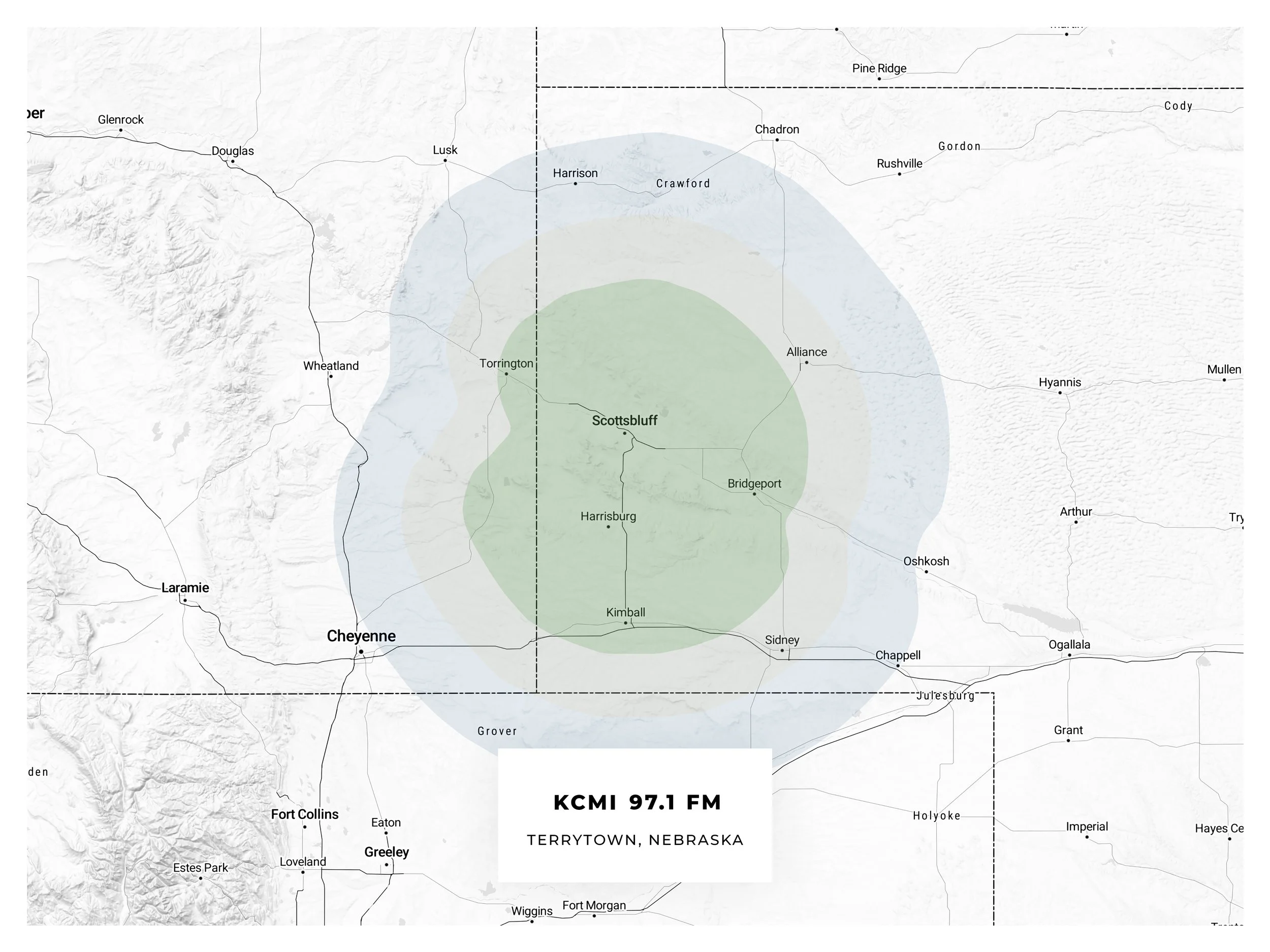 This map is licensed under the CC BY-NC 4.0 public license and has been modified to include the contours depicting the approximate coverage area for KCMI 97.1 FM Terrytown.